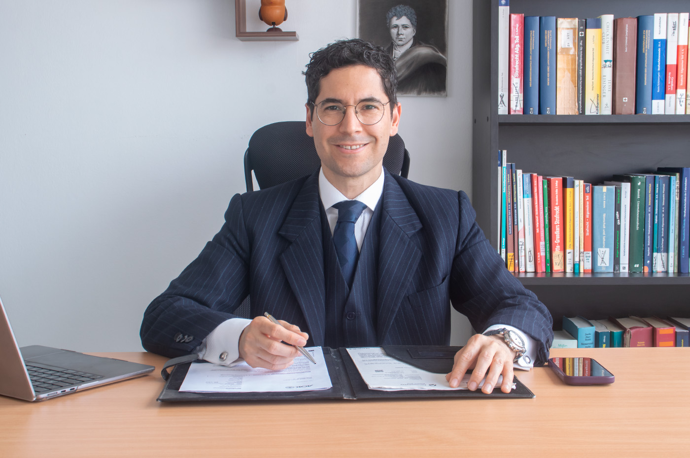El Dr. Mario Amoretti Navarro ha desarrollado una trayectoria única tras catorce años en Múnich, Alemania, donde se formó en un entorno jurídico internacional y empresarial de alto nivel. Su experiencia combina el rigor del derecho penal clásico con la capacidad de anticiparse a los desafíos legales que enfrentan hoy las empresas y líderes en un mundo globalizado.